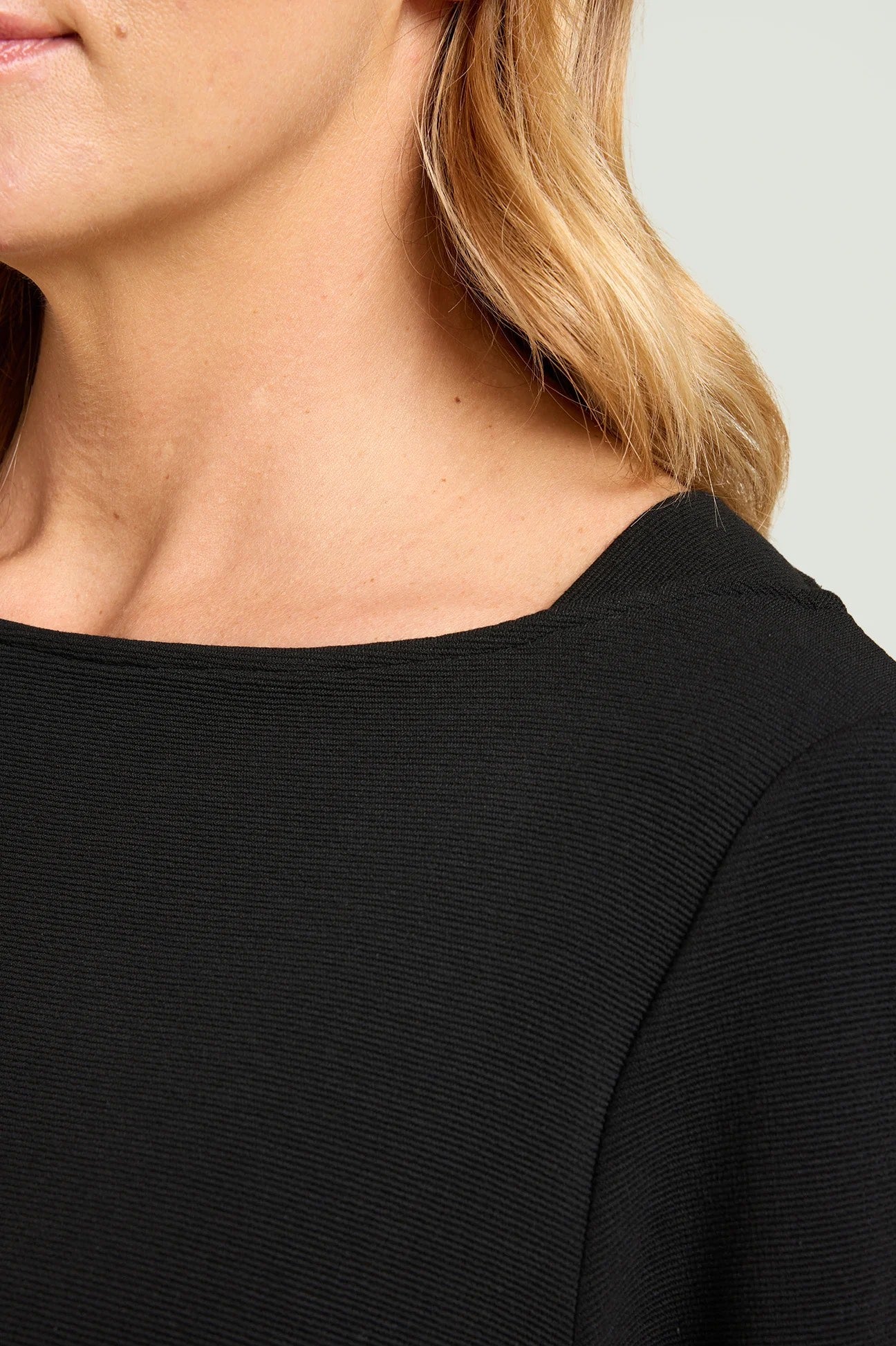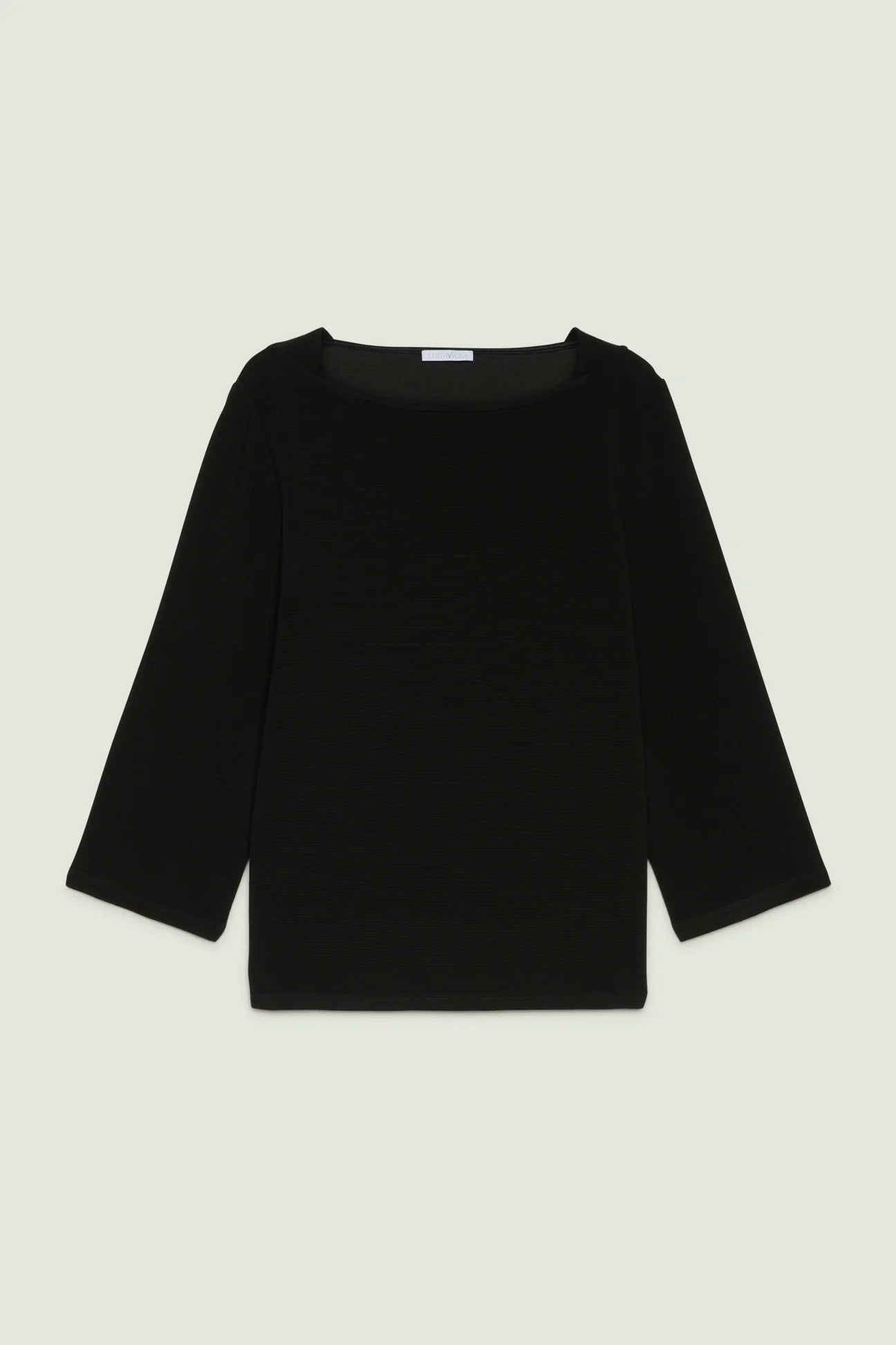 Felpa "marinière" dalla linea boxy con spacchetti laterali, scollatura a barchetta e maniche con lunghezza a tre quarti. Armatura "Ottoman".
