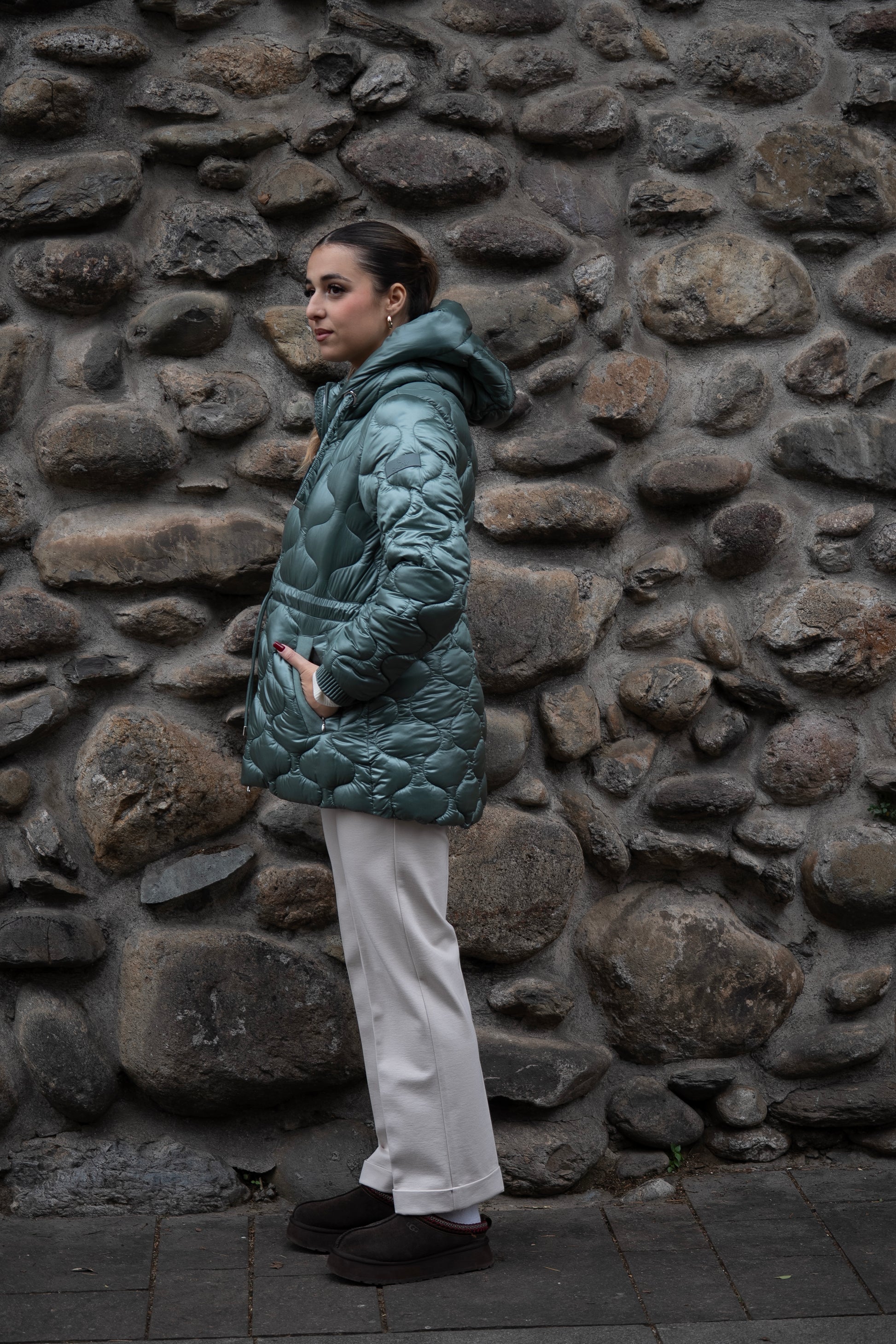 Capospalla imbottito in nylon lucido ultra leggero dal touch morbido.